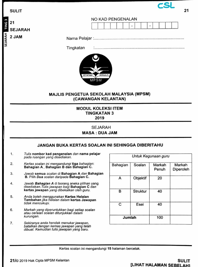 Contoh Soalan Percubaan Pt3 Wilayah Persekutuan